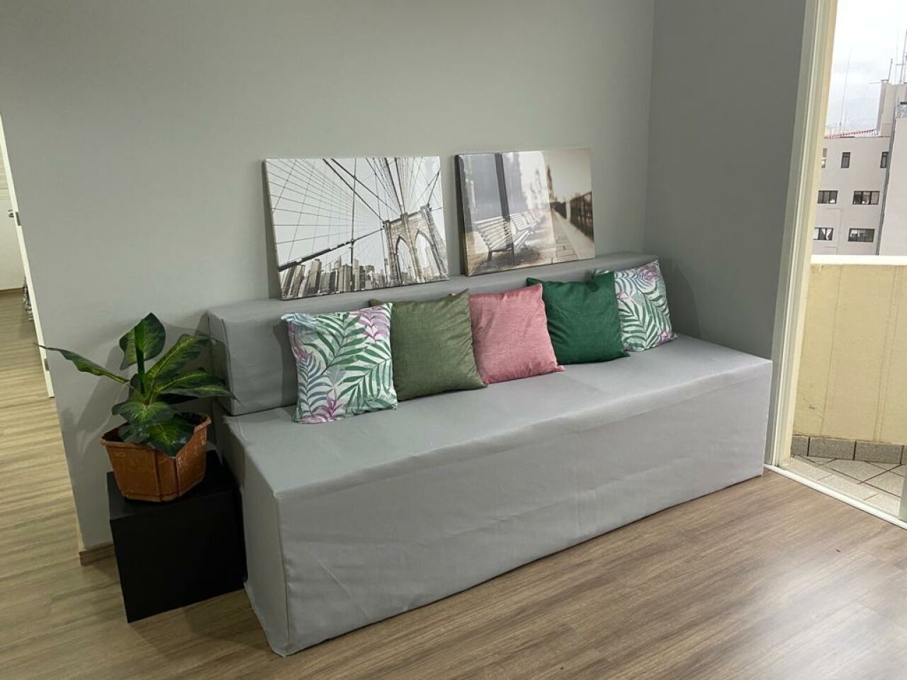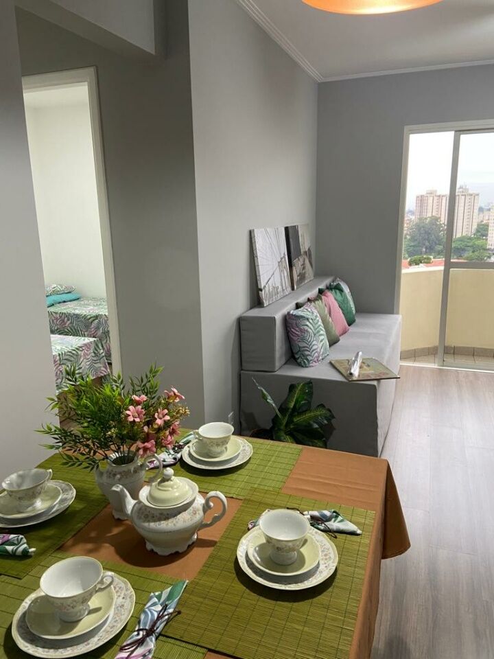 Apartamento de 57 m² de área útil, sala dois ambientes, com varanda, cozinha americana com armarios, área de serviços, 2 dormitorios com armarios, sendo 1 suíte, 2 banheiros, aquecedor a gás, pressurizador, 1 vaga de garagem, face norte.
