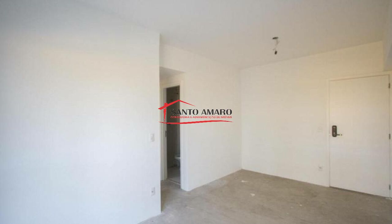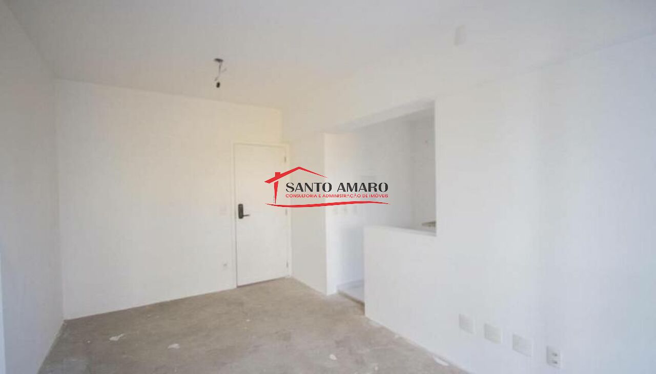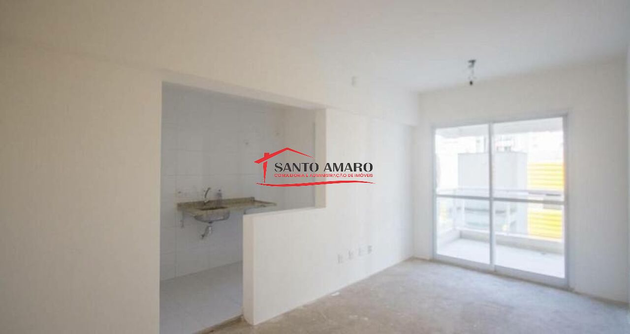 Apartamento novo, com 46 m² de área útil, sala com amplo terraço, cozinha tipo americano, área de serviços, um dormitório, e uma vaga de garagem.