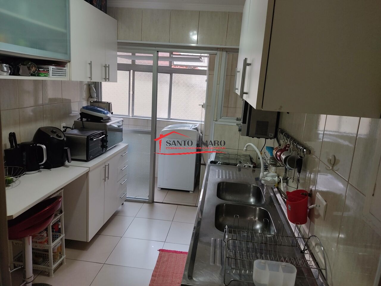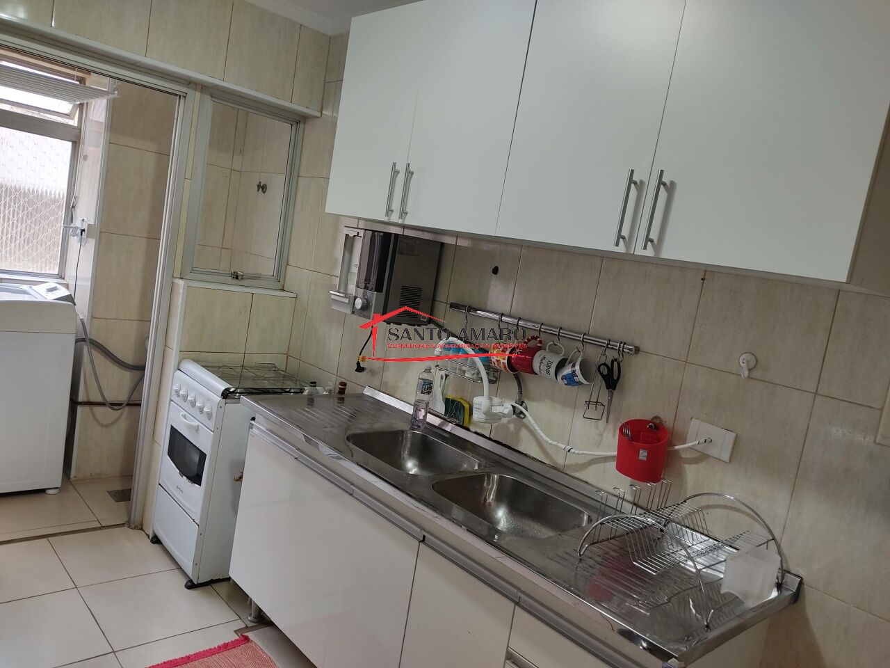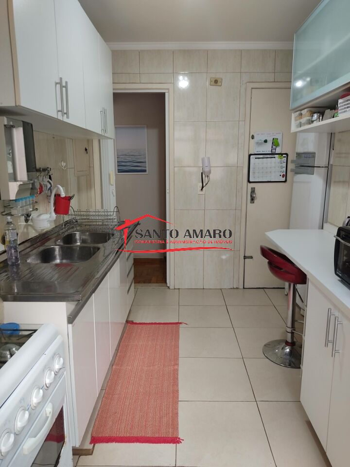 Apartamento com 98 m² de área útil, sala 2 ambientes, cozinha com armarios, área de serviços com dependencia de empregada e wc, 2 dormitórios com armarios, uma vaga de garagem.
