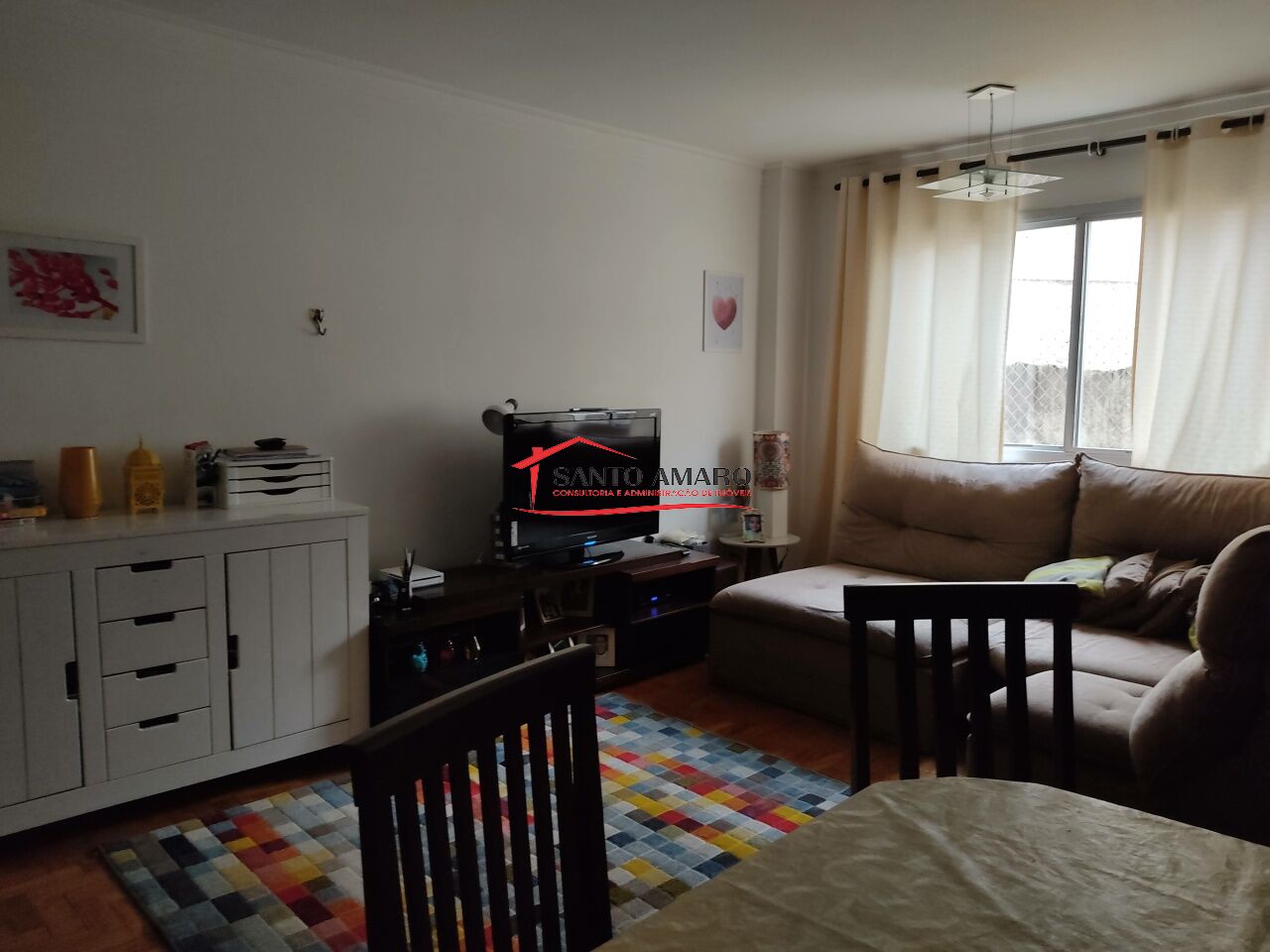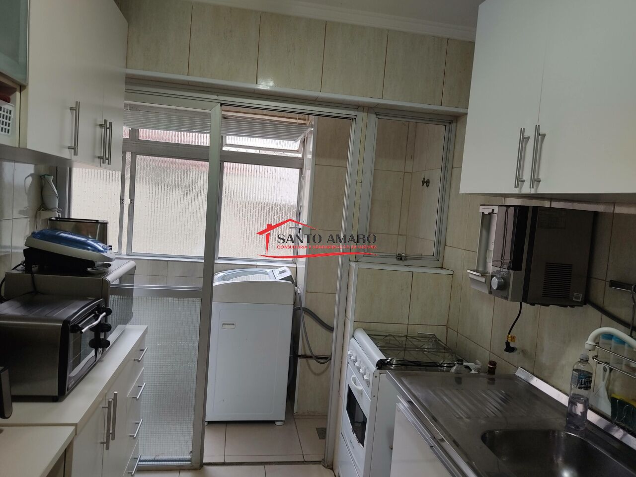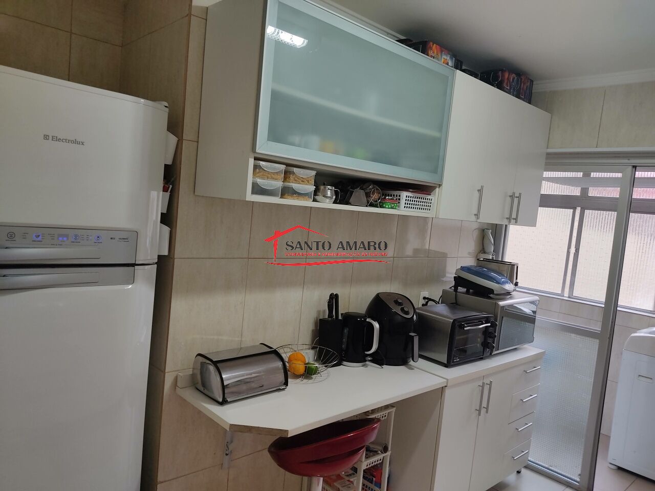 Apartamento com 98 m² de área útil, sala 2 ambientes, cozinha com armarios, área de serviços com dependencia de empregada e wc, 2 dormitórios com armarios, uma vaga de garagem.
