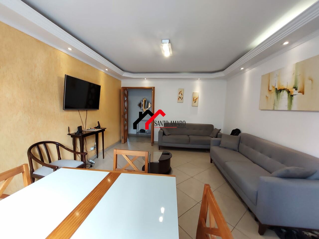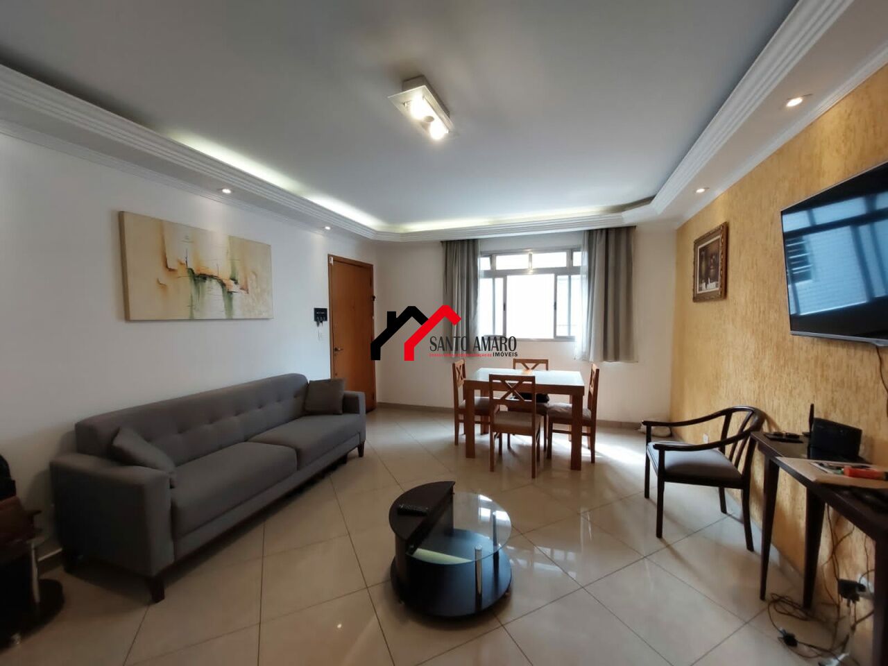 Apartamento com 93 m² de área útil, Sala de Jantar e Sala de Estar, Cozinha com armários, Área de Serviços, 3 dormitórios, com armários, sendo uma suite, terceiro dormitório transformado em escritório, uma vaga de garagem.