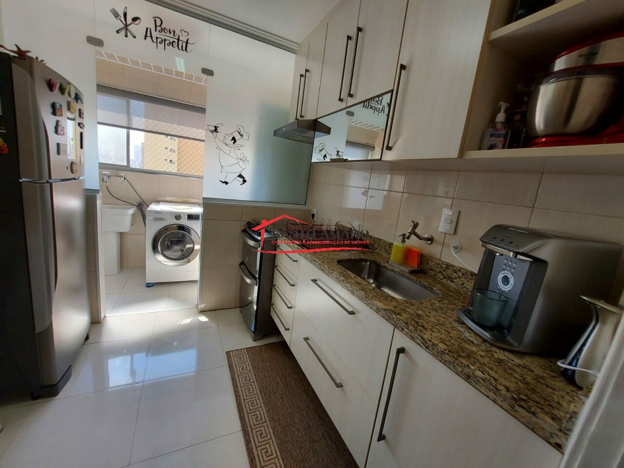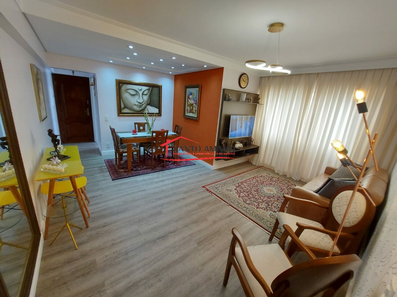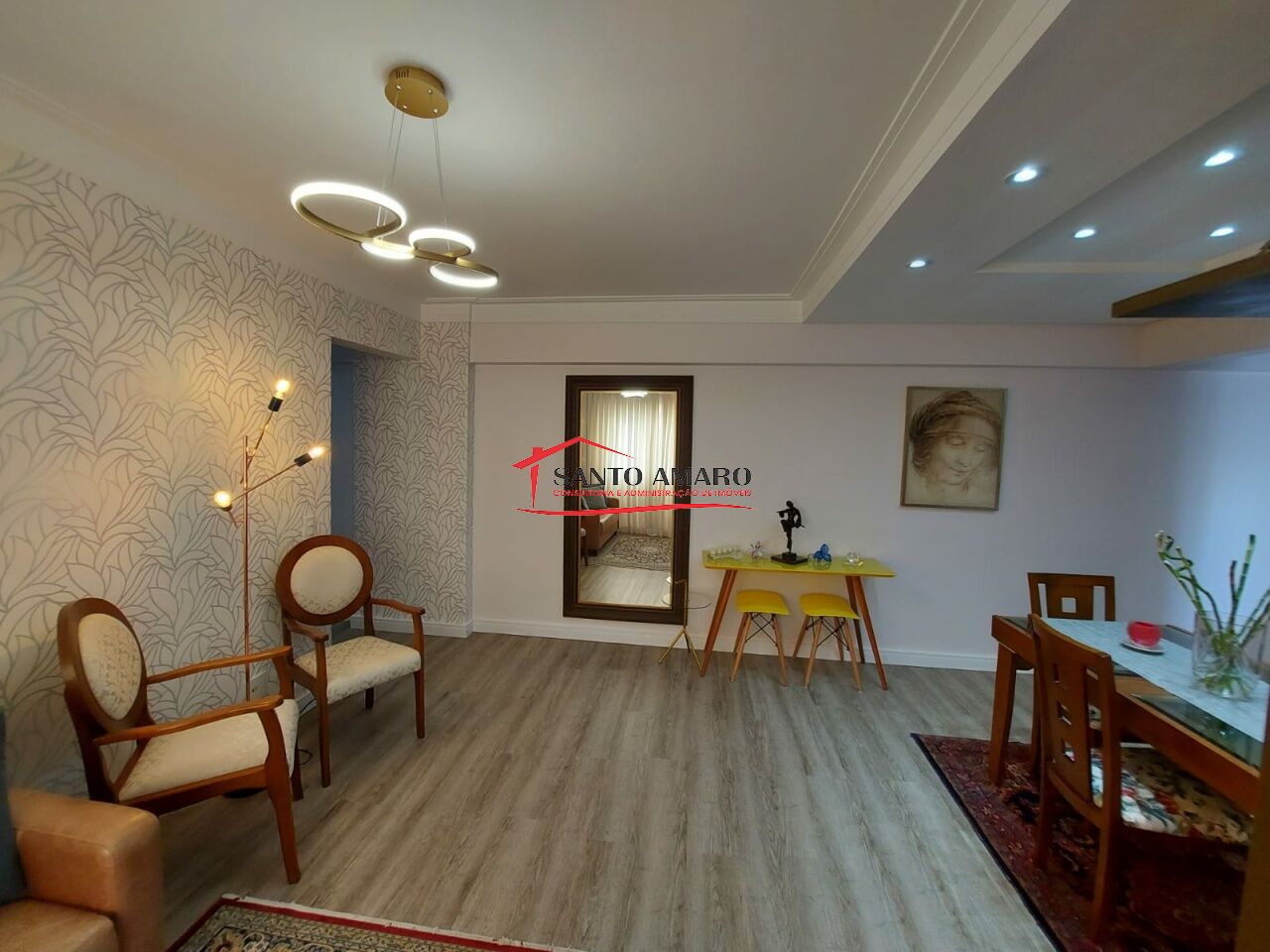 Apartamento com 78 m² de área útil, totalmente reformado, sala ampla para 2 ambientes, cozinha com armarios planejados, área de serviços com banheiro e despensa, 2 dormitórios com armarios, banheiro social e uma vaga na garagem.