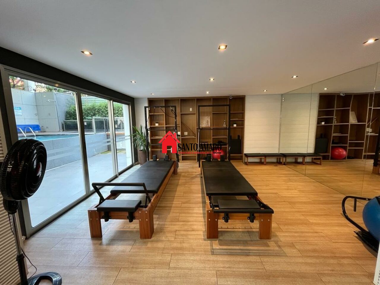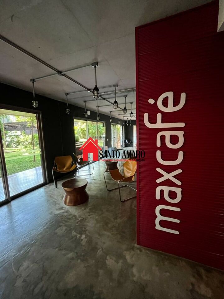 Prédio com academia montada, piscina com raia, espaço gourmet e espaço Coworking/Lounge MaxCafé.