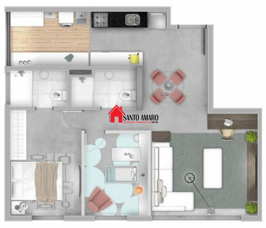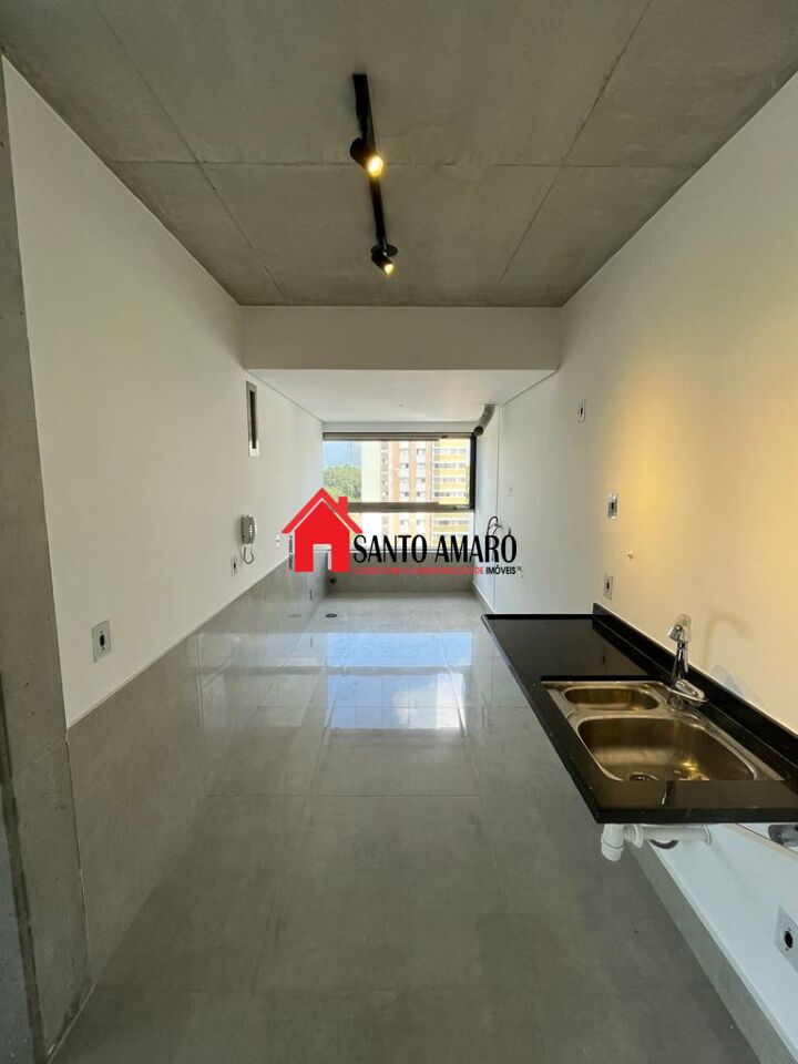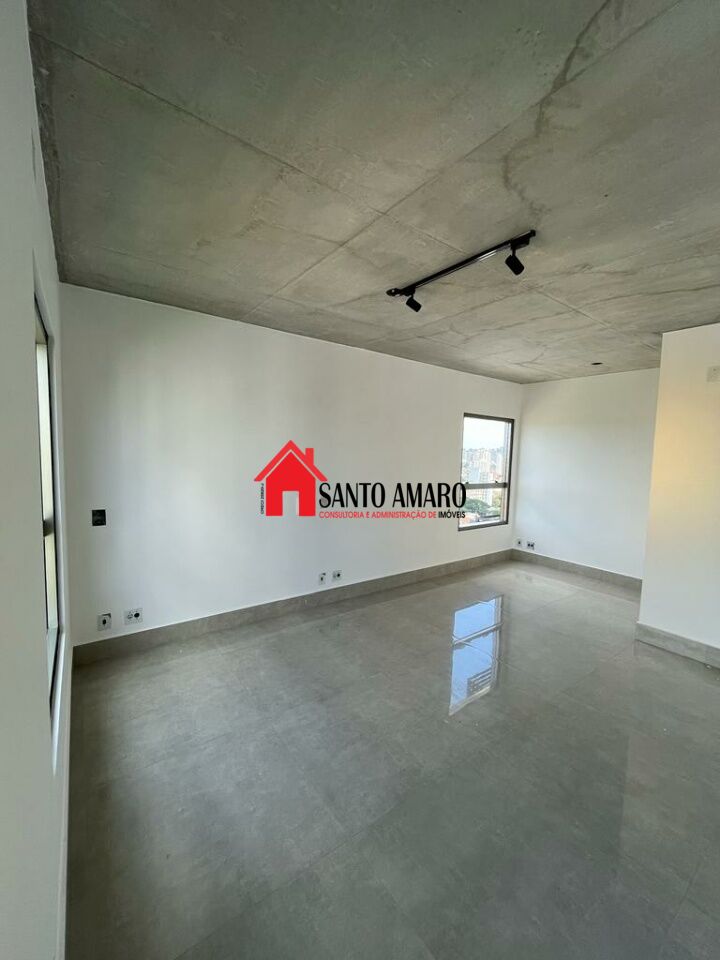 Imóvel com 70mts e capacidade para até dois quartos, com planta modular, padrão Max Haus, estando com o vão aberto. Tem piso de porcelanato com pedra grande, polida. Andar alto.