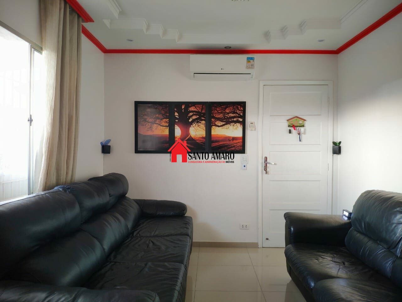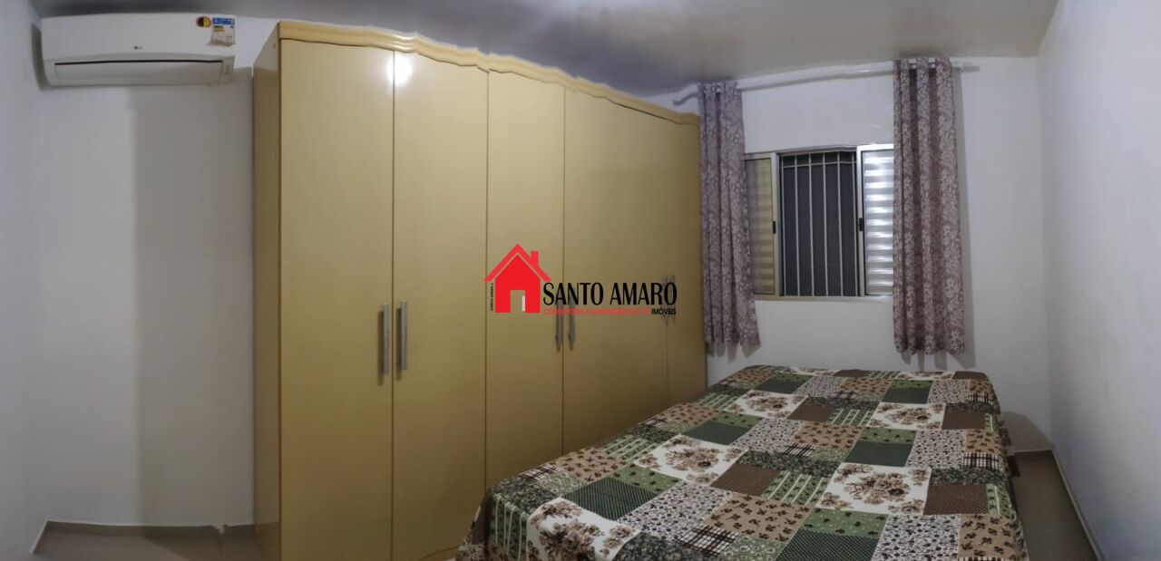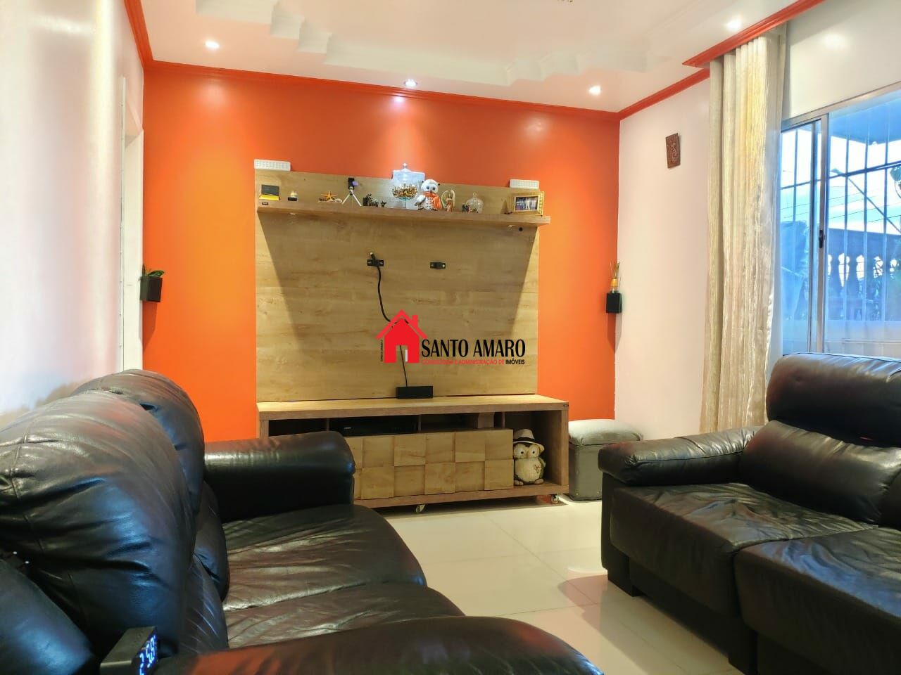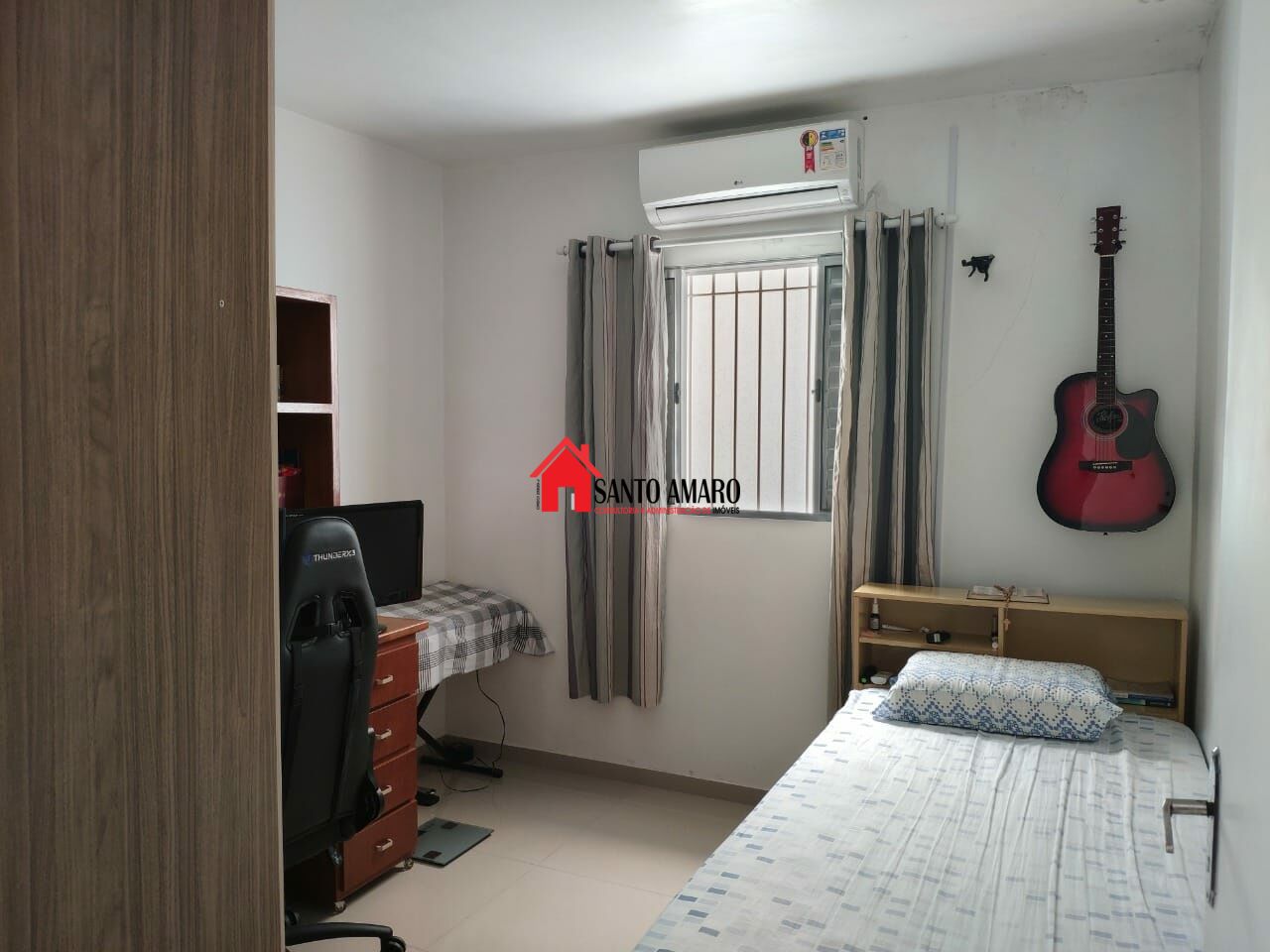 Casa principal com piso em porcelanato, 3 ar condicionados LG split (12000 BTUs), distribuídos na sala e nos quartos.