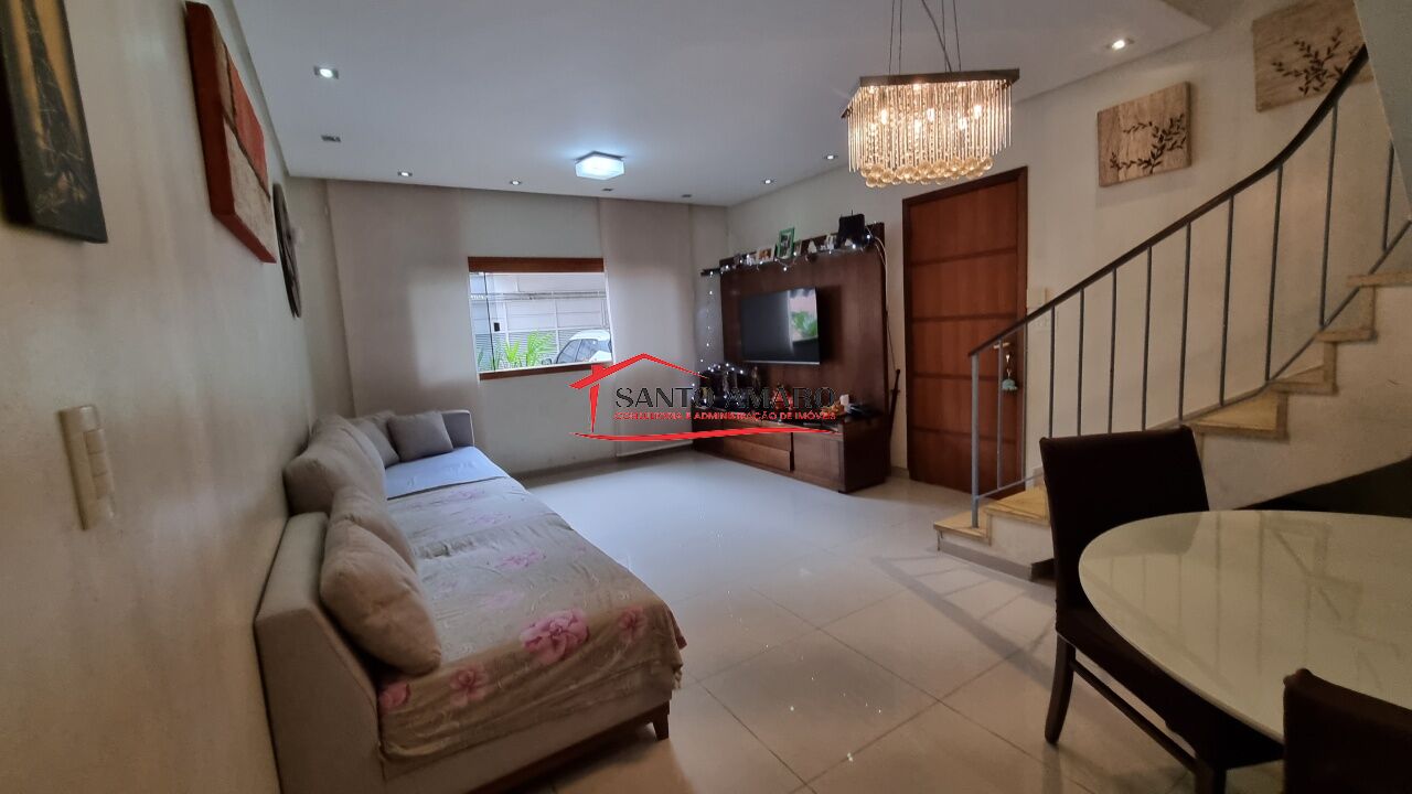 Sobrado com 195 m² de área construida, sala de estar e de jantar, lavabo, cozinha com armários, área de serviços, 2 dormitórios amplos com armários, banheiro social, suite de apoio, amplo quintal com arvore frutifera e salao de festas, garagem para 2 veículos, e entrada lateral.
