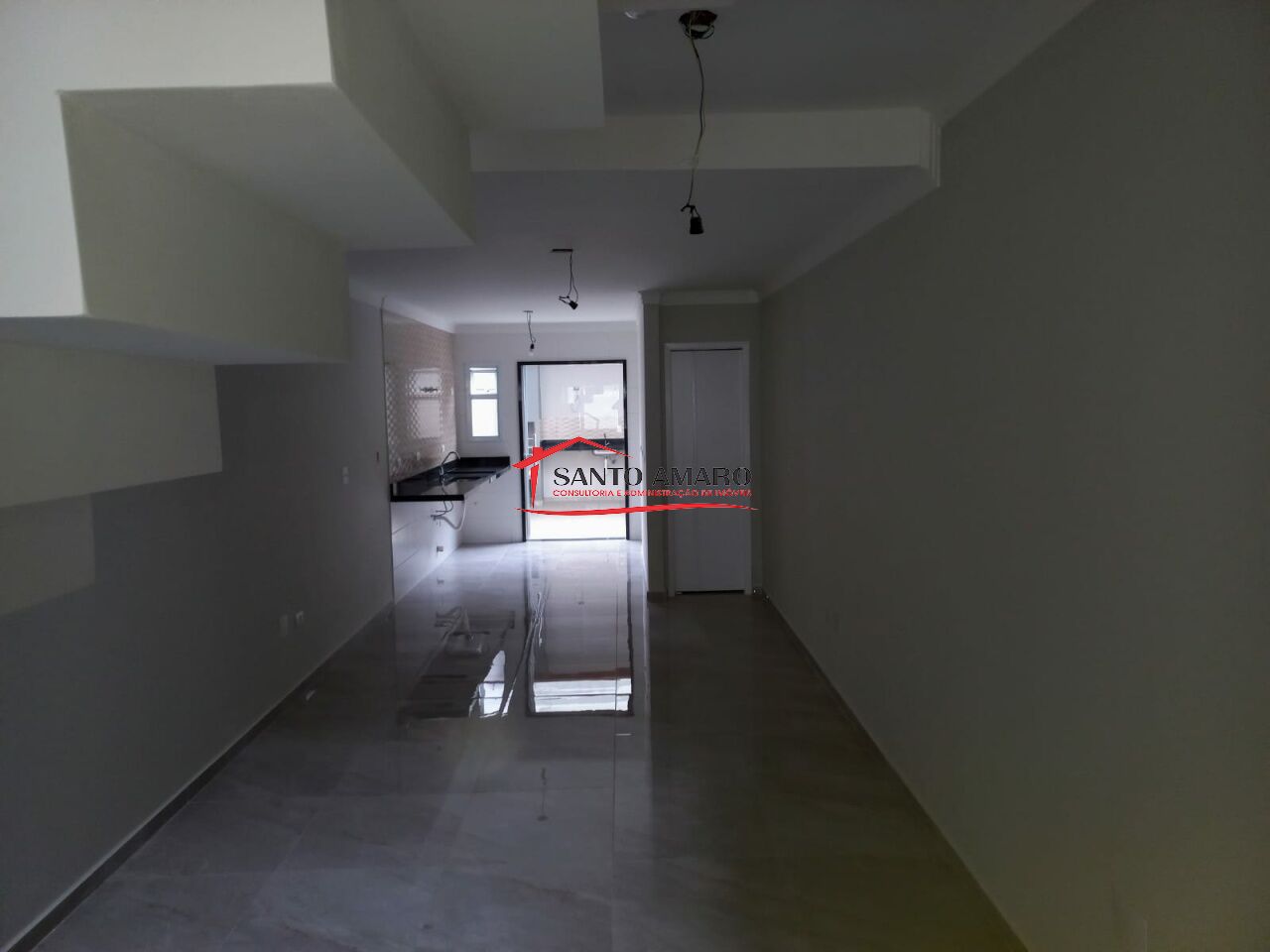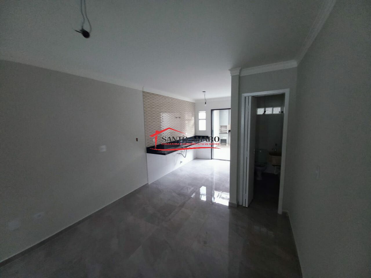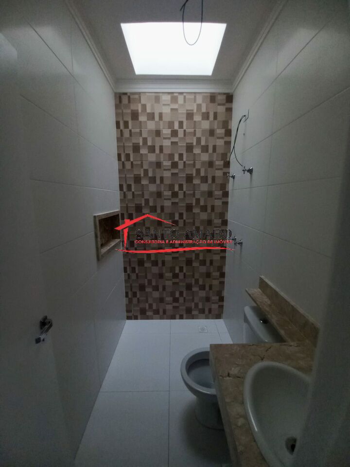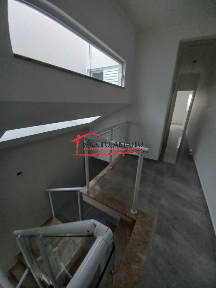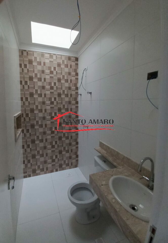 Sobrado novo, com 110 m² de área construida, sala de estar e sala de jantar integrada a cozinha, todos com piso em porcelanato, lavabo, 3 dormitórios, sendo uma suite, quintal com espaço gourmet com churrasqueria, garabem para 2 veículos com portao automatizado.