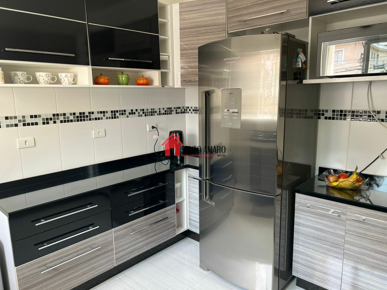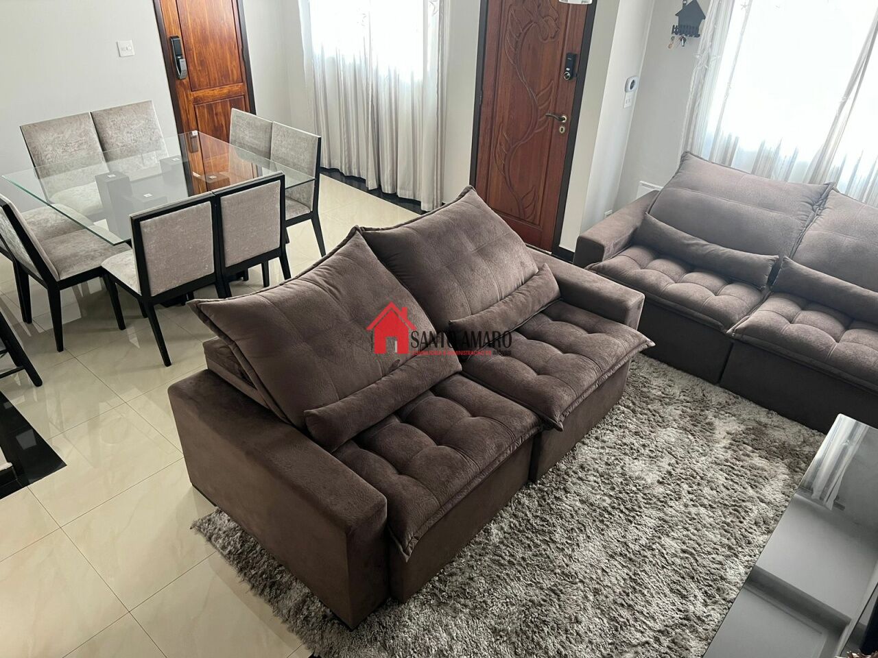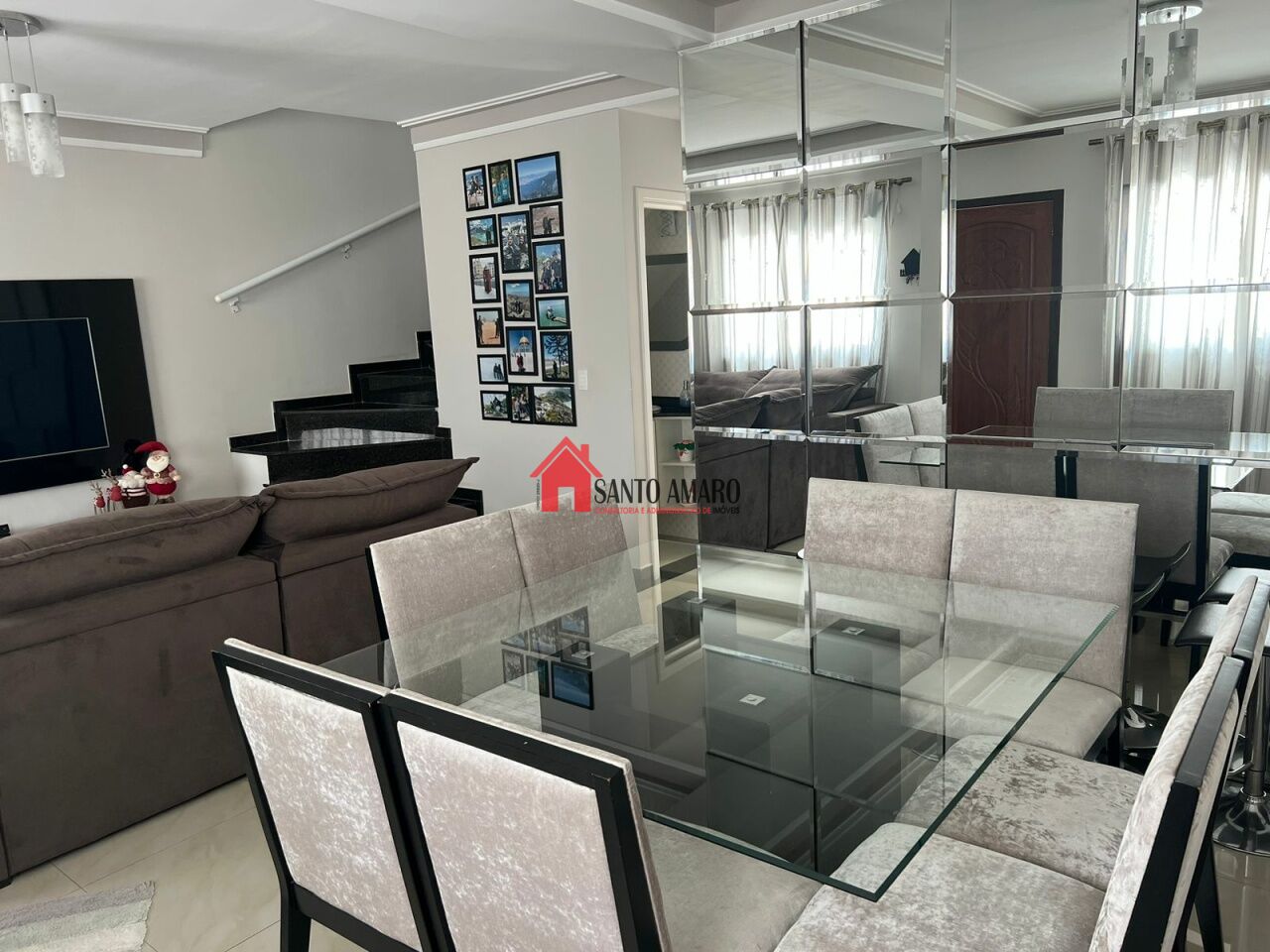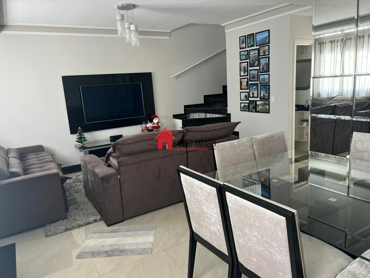 Sobrado em condominio fechado, 144 m² de área total, sala de estar e sala de jantar, cozinha com armarios planejados, área de serviços, 3 dormitórios com armarios, sendo uma suite, garagem para 2 veiculos.